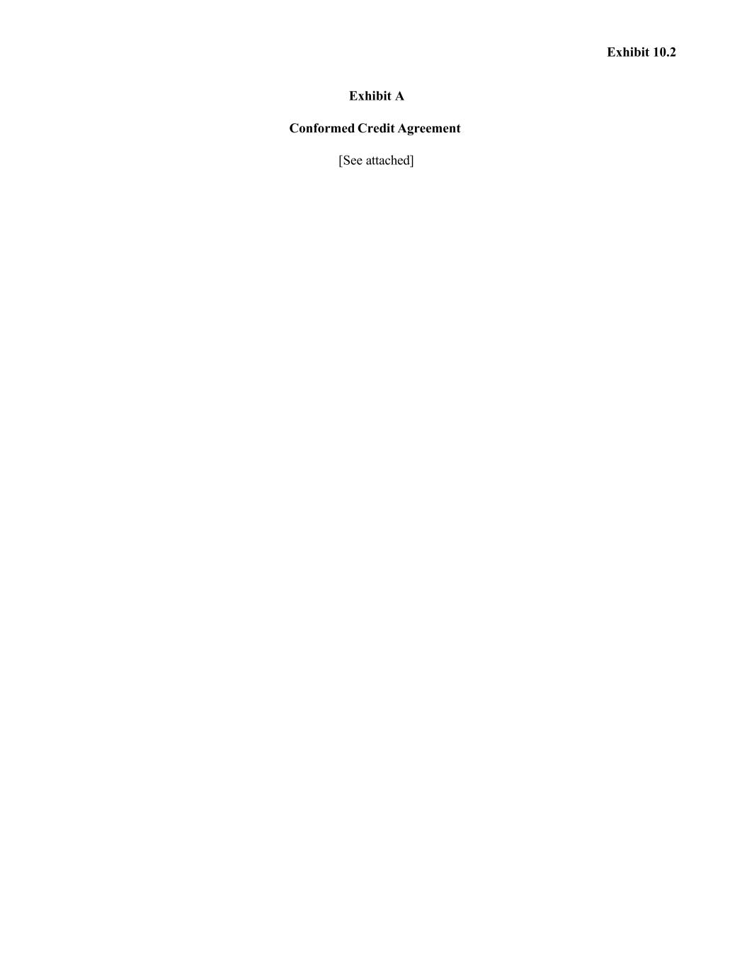 Exhibit 10.2 Exhibit A Conformed Credit Agreement [See attached]