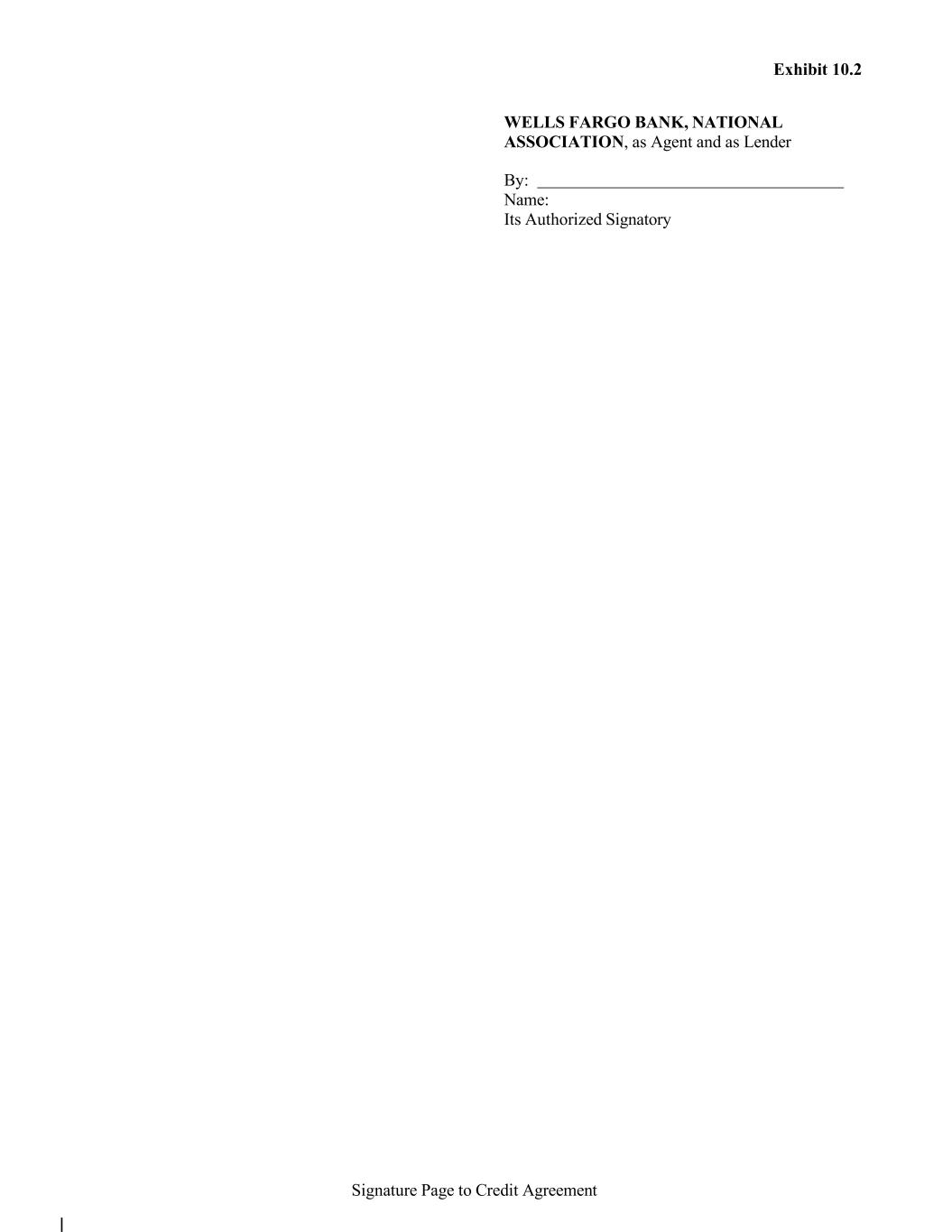 Signature Page to Credit Agreement Exhibit 10.2 WELLS FARGO BANK, NATIONAL ASSOCIATION, as Agent and as Lender By: Name: Its Authorized Signatory