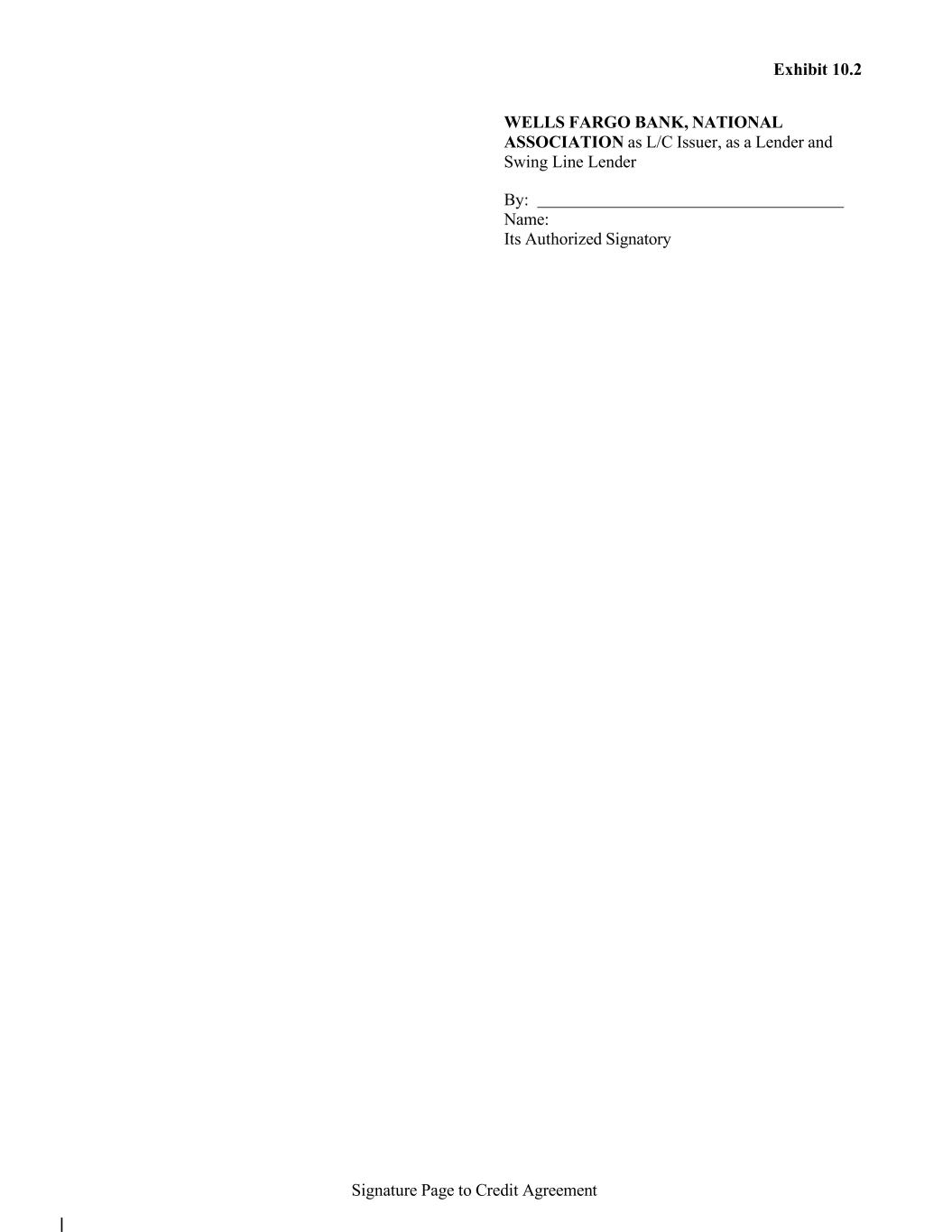 Signature Page to Credit Agreement Exhibit 10.2 WELLS FARGO BANK, NATIONAL ASSOCIATION as L/C Issuer, as a Lender and Swing Line Lender By: Name: Its Authorized Signatory