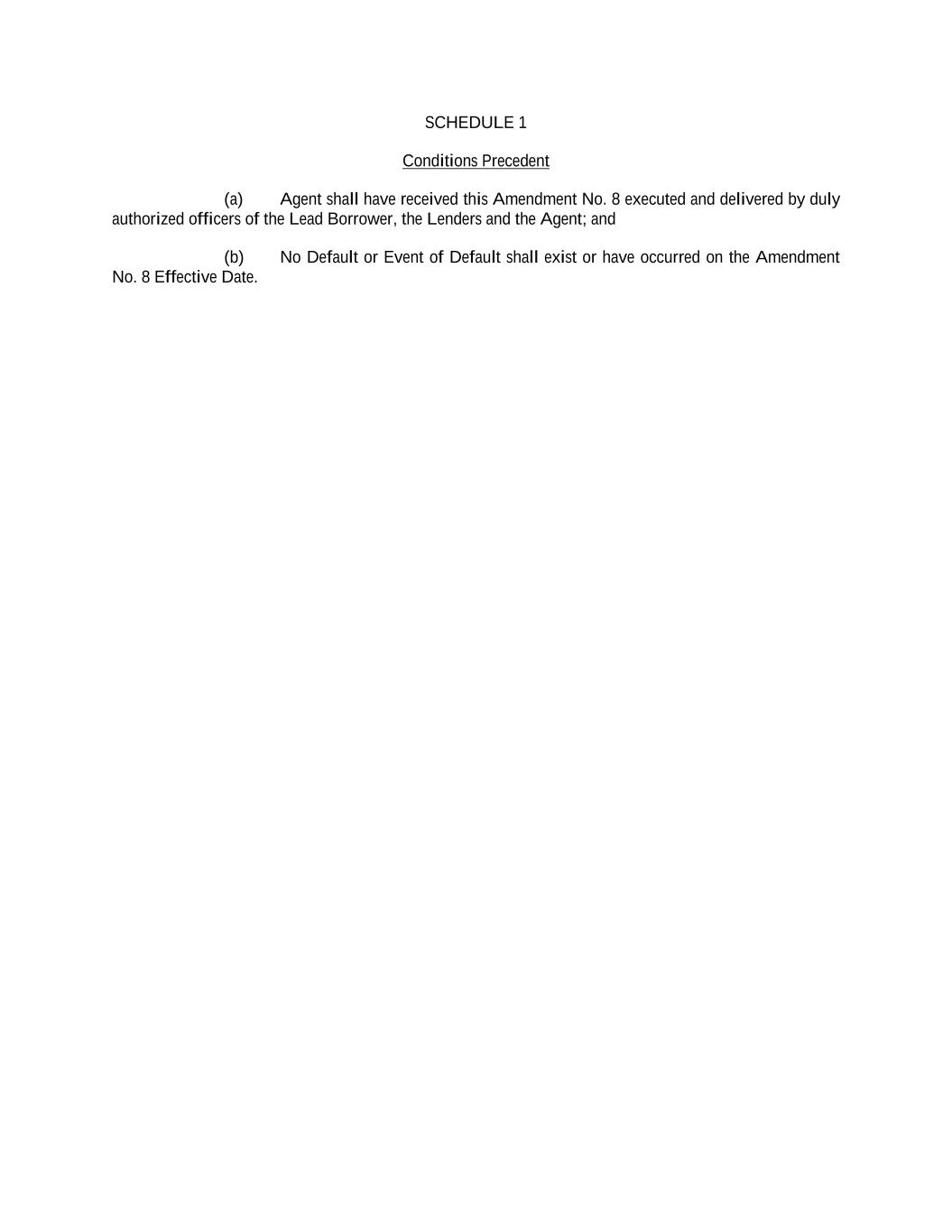 SCHEDULE 1 Conditions Precedent (a) Agent shall have received this Amendment No. 8 executed and delivered by duly authorized officers of the Lead Borrower, the Lenders and the Agent; and (b) No Default or Event of Default shall exist or have occurred on the Amendment No. 8 Effective Date.